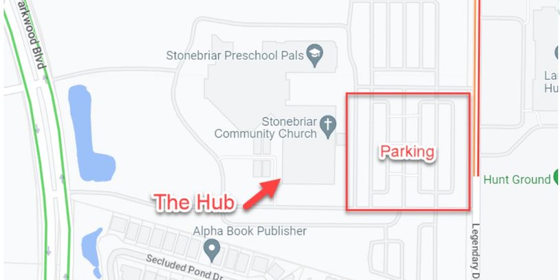 Stonebriar Community Church is located at 4801 Legendary Drive. Please park on the Legendary side of the church building and enter building B at the covered drive. We will have our welcome team there ready to get you checked in and directed to our meeting room. Please ensure that you do check in and receive a Frisco Connect name tag before proceeding to our event!